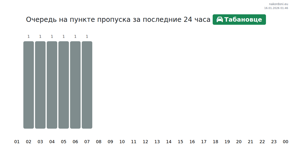 Анализ очереди на границе на пункте пропуска Табановце - легковой автомобиль за вчера