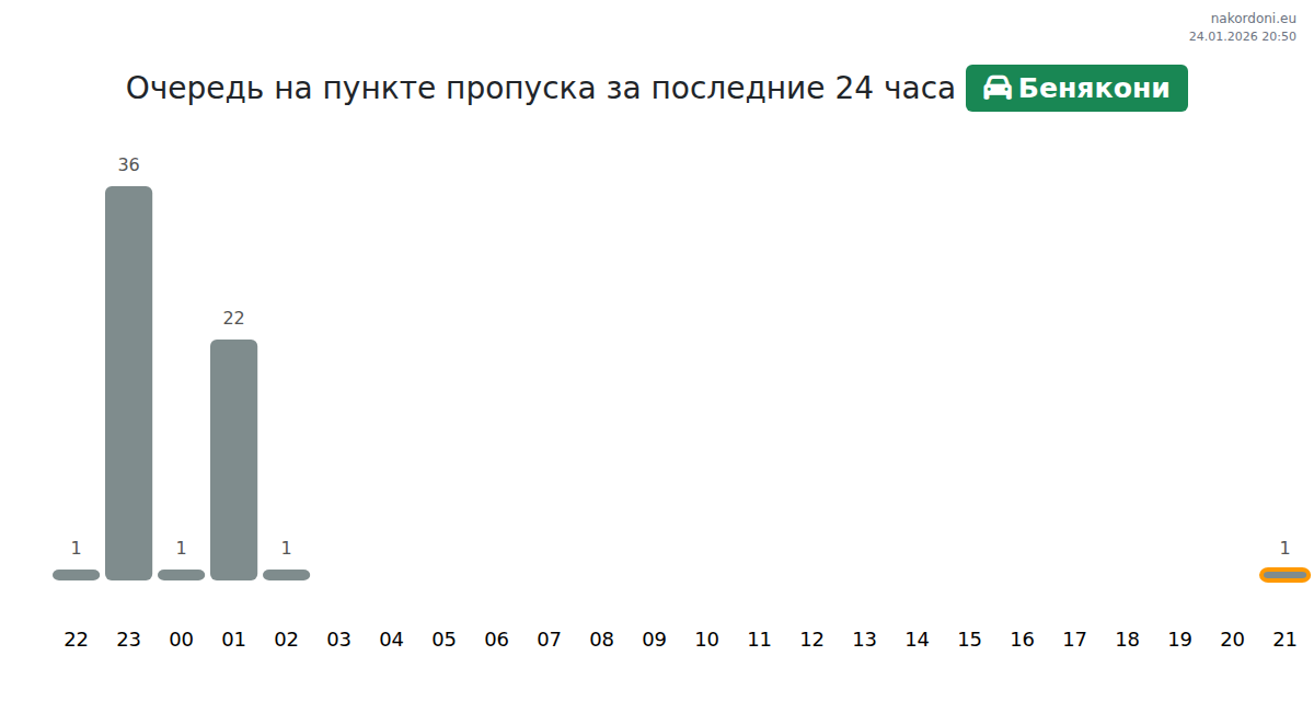 Анализ очереди на границе на пункте пропуска Бенякони - легковой автомобиль за вчера