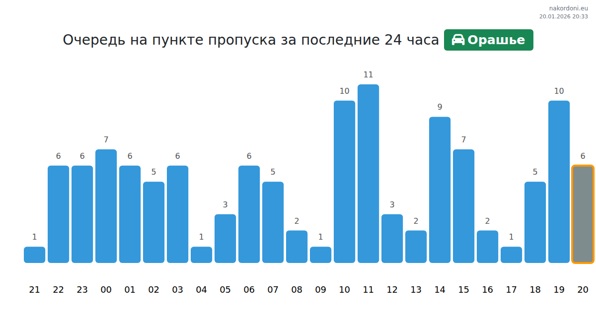 Планируйте свои поездки заранее, используя актуальную информацию о очередях на границе на пункте пропуска Орашье - легковой автомобиль, чтобы сделать ваш переход быстрым и удобным. Обратите особое внимание на эти часы, чтобы избежать пиковых нагрузок и сократить время ожидания.