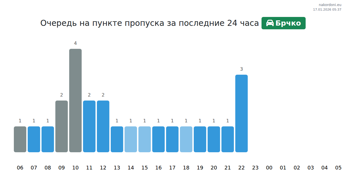 Анализ очереди на границе на пункте пропуска Брчко - легковой автомобиль за вчера
