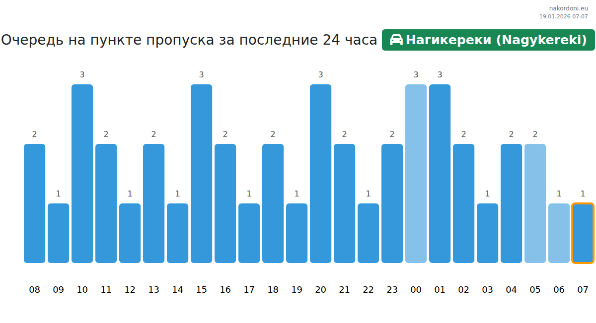 Планируйте свои поездки заранее, используя актуальную информацию о очередях на границе на пункте пропуска Нагикереки (Nagykereki) - легковой автомобиль, чтобы сделать ваш переход быстрым и удобным. Обратите особое внимание на эти часы, чтобы избежать пиковых нагрузок и сократить время ожидания.