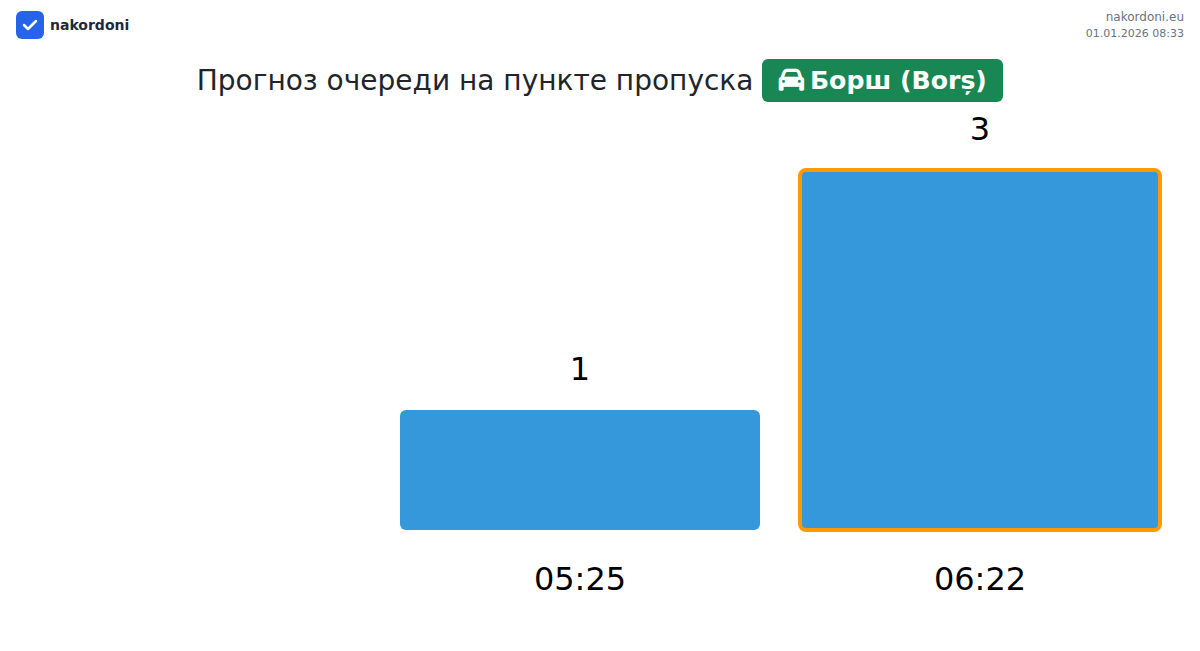 Планируйте свои поездки заранее, используя актуальную информацию о очередях на границе на пункте пропуска Борш (Borș) - легковой автомобиль, чтобы сделать ваш переход быстрым и удобным. Обратите особое внимание на эти часы, чтобы избежать пиковых нагрузок и сократить время ожидания.