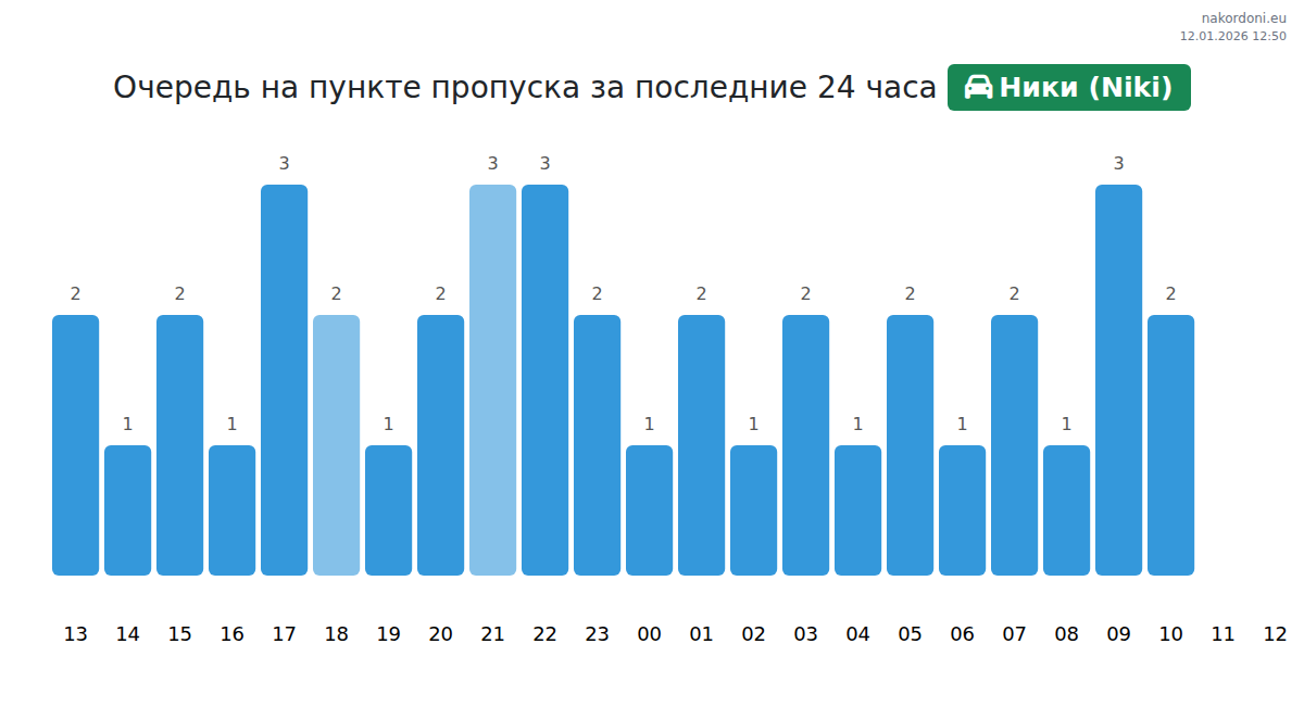 Планируйте свои поездки заранее, используя актуальную информацию о очередях на границе на пункте пропуска Ники (Niki) - легковой автомобиль, чтобы сделать ваш переход быстрым и удобным. Обратите особое внимание на эти часы, чтобы избежать пиковых нагрузок и сократить время ожидания.