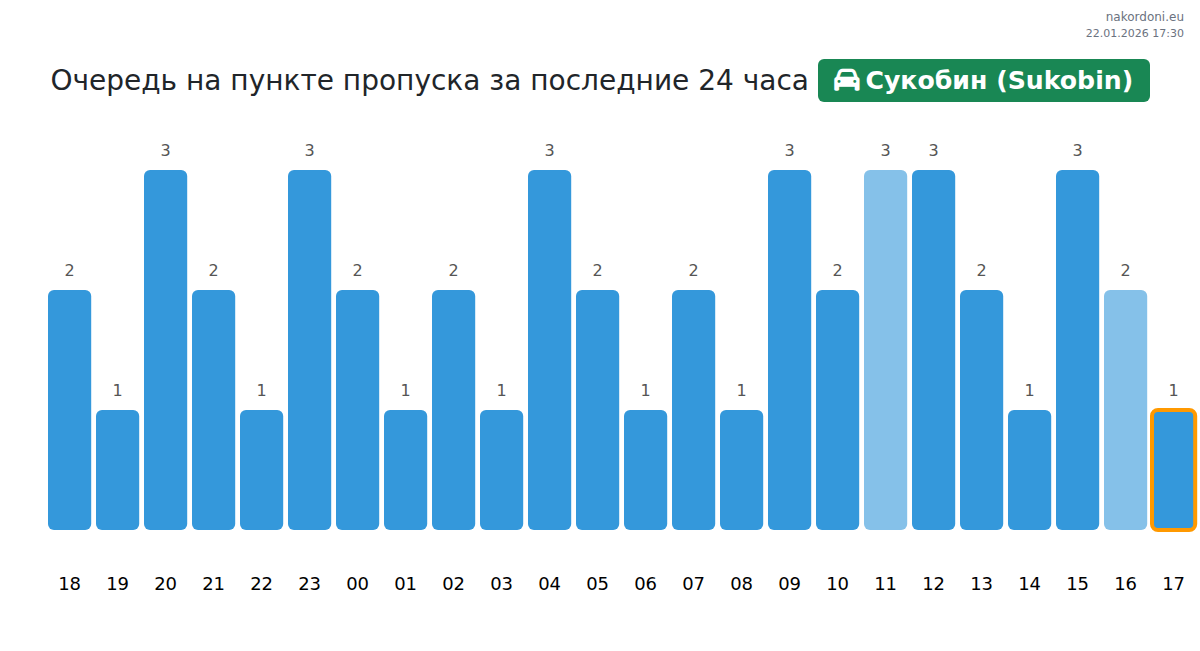 Планируйте свои поездки заранее, используя актуальную информацию о очередях на границе на пункте пропуска Сукобин (Sukobin) - легковой автомобиль, чтобы сделать ваш переход быстрым и удобным. Обратите особое внимание на эти часы, чтобы избежать пиковых нагрузок и сократить время ожидания.
