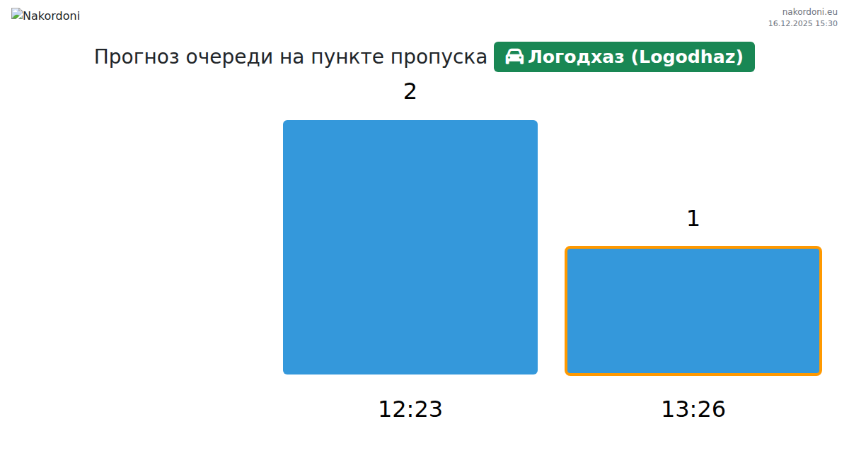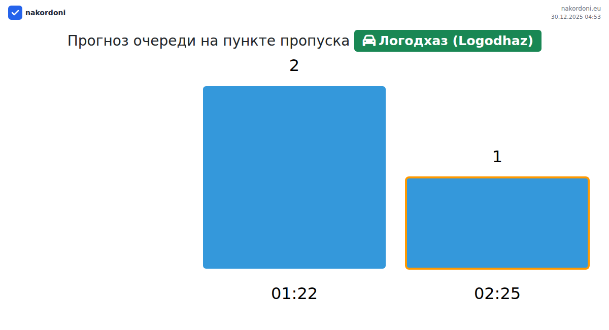 Планируйте свои поездки заранее, используя актуальную информацию о очередях на границе на пункте пропуска Логодхаз (Logodhaz) - легковой автомобиль, чтобы сделать ваш переход быстрым и удобным. Обратите особое внимание на эти часы, чтобы избежать пиковых нагрузок и сократить время ожидания.