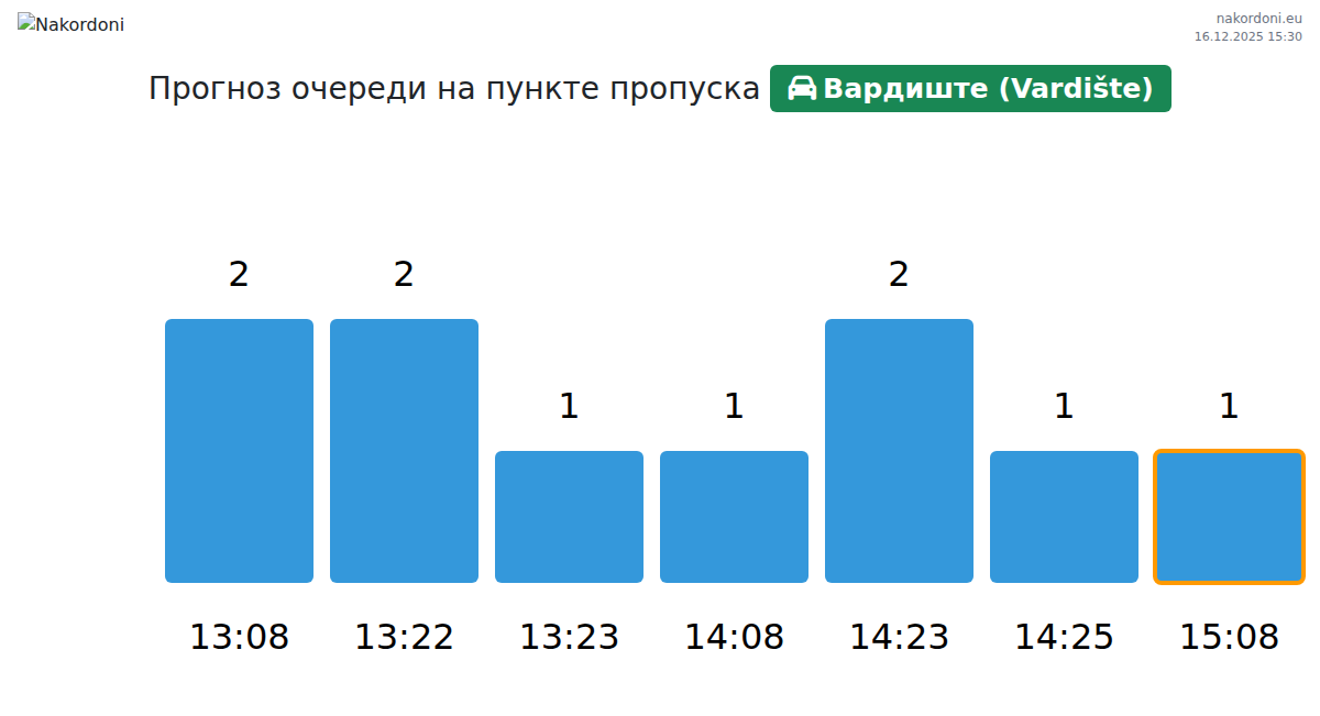 Анализ очереди на границе на пункте пропуска Вардиште (Vardište) - легковой автомобиль за вчера