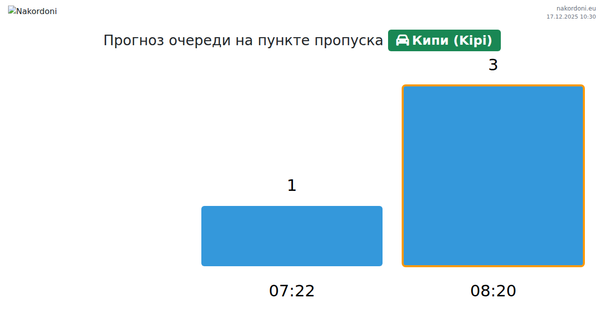 Анализ очереди на границе на пункте пропуска Кипи (Kipi) - легковой автомобиль за вчера