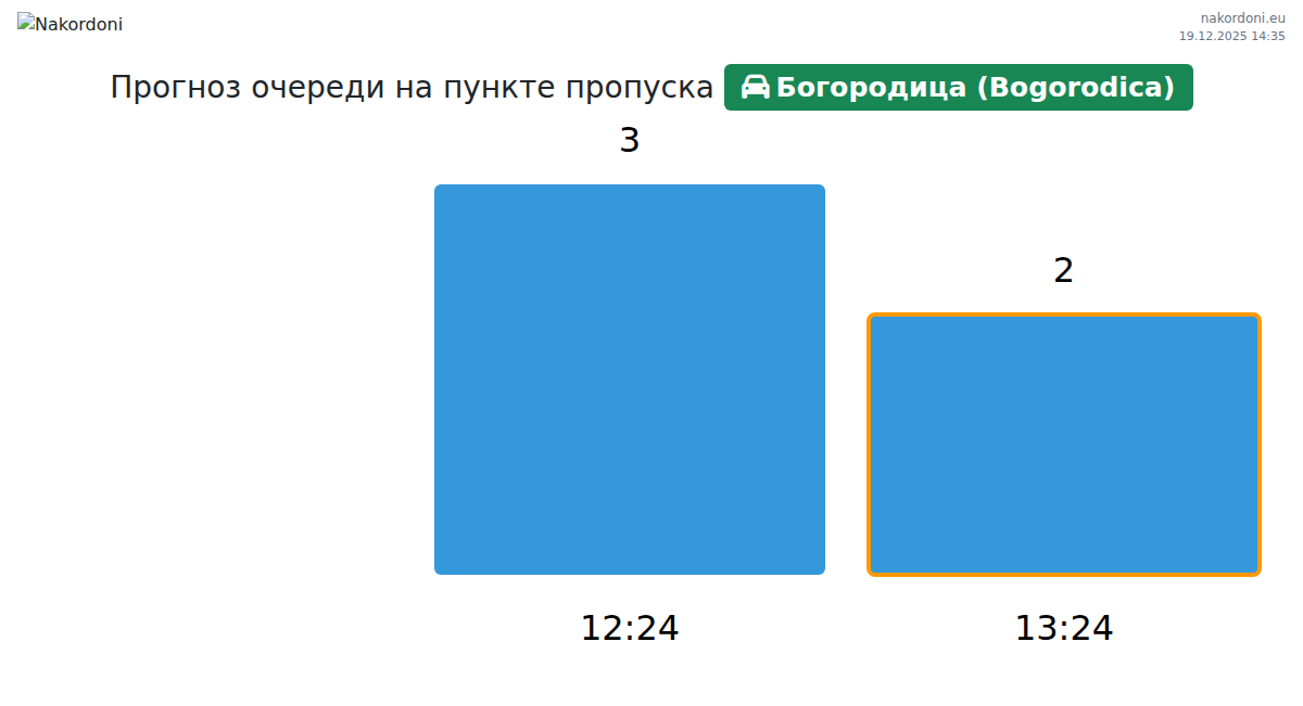 Анализ очереди на границе на пункте пропуска Богородица (Bogorodica) - легковой автомобиль за вчера