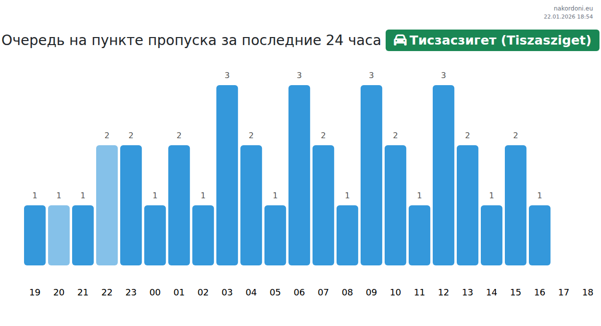 Планируйте свои поездки заранее, используя актуальную информацию о очередях на границе на пункте пропуска Тисзасзигет (Tiszasziget) - легковой автомобиль, чтобы сделать ваш переход быстрым и удобным. Обратите особое внимание на эти часы, чтобы избежать пиковых нагрузок и сократить время ожидания.