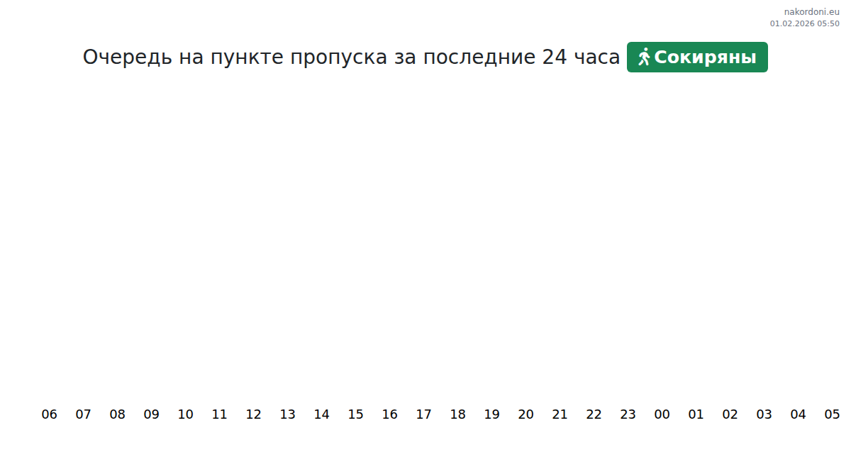 На пункте пропуска Сокиряны время ожидания составляет 15-15 минут. Пиковые нагрузки наблюдаются в 22:00, 23:00 и 00:00, а наиболее благоприятное время для проезда — с 01:00 до 03:00.