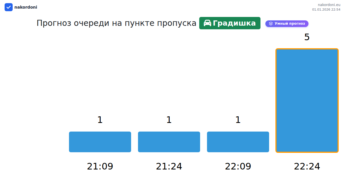 Планируйте свои поездки заранее, используя актуальную информацию о очередях на границе на пункте пропуска Градишка - легковой автомобиль, чтобы сделать ваш переход быстрым и удобным. Обратите особое внимание на эти часы, чтобы избежать пиковых нагрузок и сократить время ожидания.
