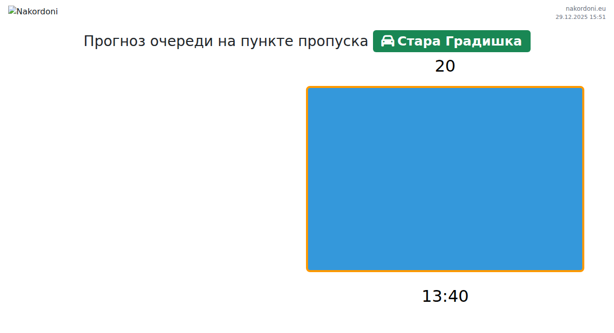 Анализ очереди на границе на пункте пропуска Стара Градишка - легковой автомобиль за вчера