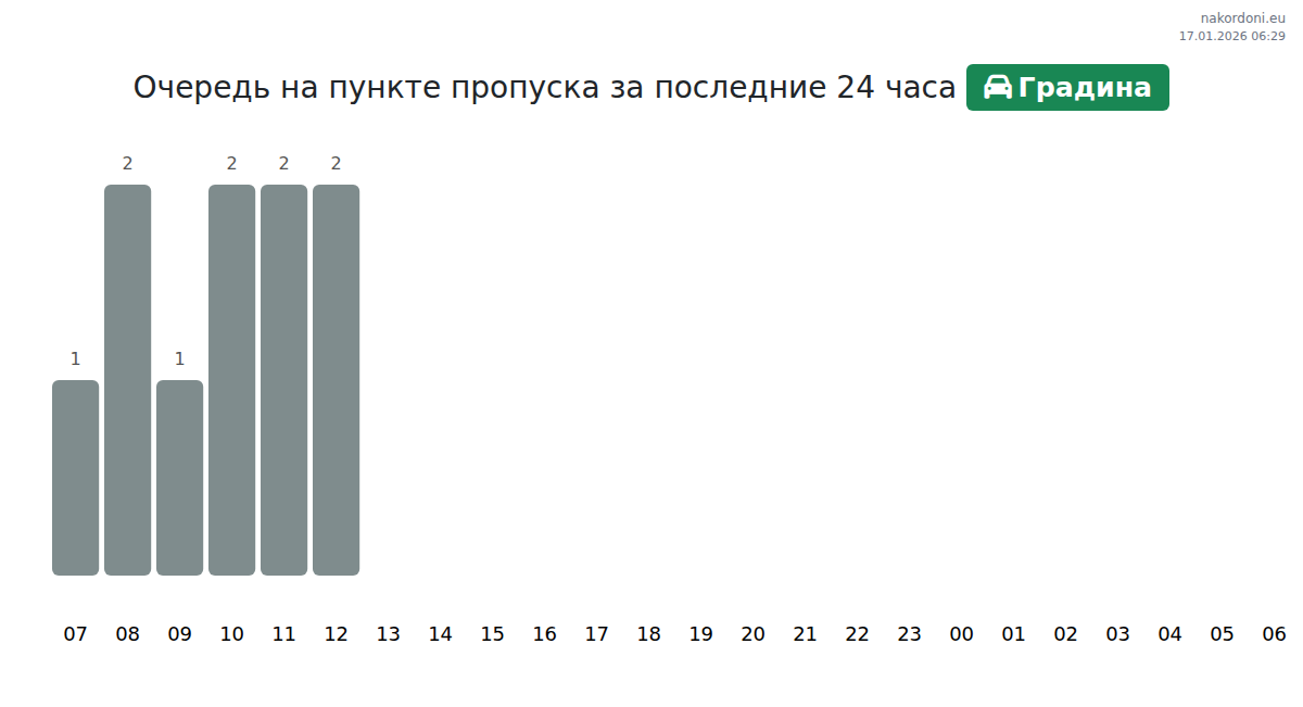 Планируйте свои поездки заранее, используя актуальную информацию о очередях на границе на пункте пропуска Градина - легковой автомобиль, чтобы сделать ваш переход быстрым и удобным. Обратите особое внимание на эти часы, чтобы избежать пиковых нагрузок и сократить время ожидания.