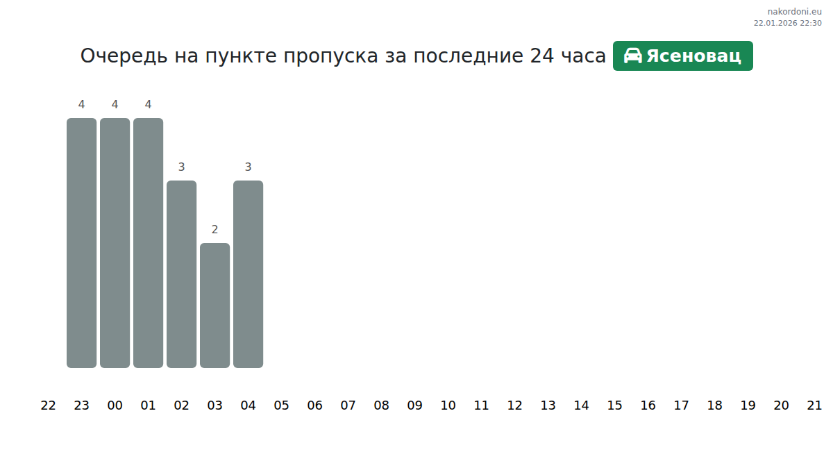 Планируйте свои поездки заранее, используя актуальную информацию о очередях на границе на пункте пропуска Ясеновац - легковой автомобиль, чтобы сделать ваш переход быстрым и удобным. Обратите особое внимание на эти часы, чтобы избежать пиковых нагрузок и сократить время ожидания.