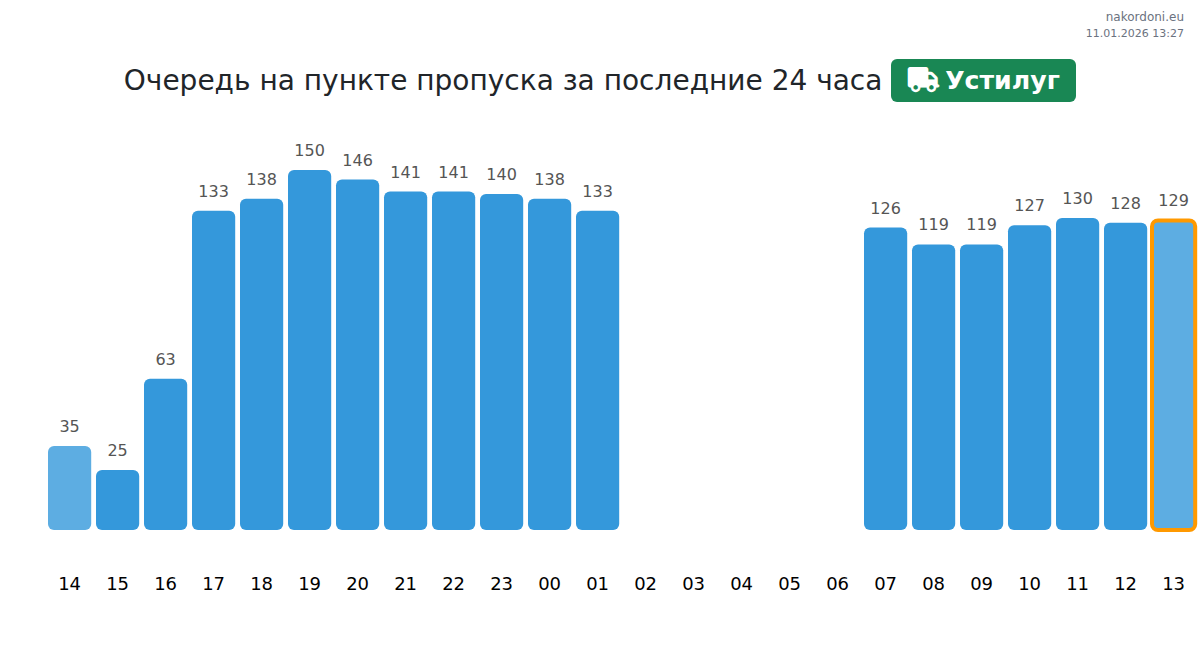 Чтобы избежать длинных очередей на границе на пункте пропуска Устилуг - грузовой транспорт, рекомендуем планировать пересечение границы в часы наименьшей нагрузки. Согласно данным за прошлые сутки, наименьшее количество автомобилей наблюдалось между 1:00 и 9:00 часами. Это идеальное время для пересечения границы, чтобы сэкономить время и избежать задержек.