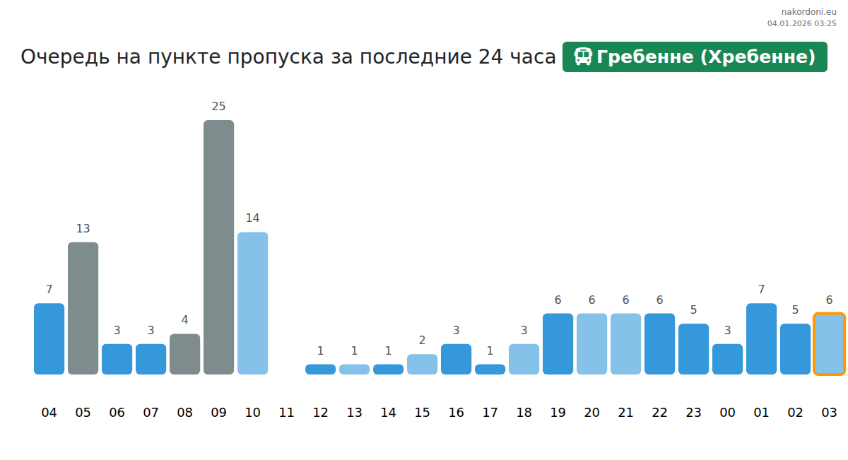 Планируйте свои поездки заранее, используя актуальную информацию о очередях на границе на пункте пропуска Гребенне (Хребенне) - автобус, чтобы сделать ваш переход быстрым и удобным. Обратите особое внимание на эти часы, чтобы избежать пиковых нагрузок и сократить время ожидания.