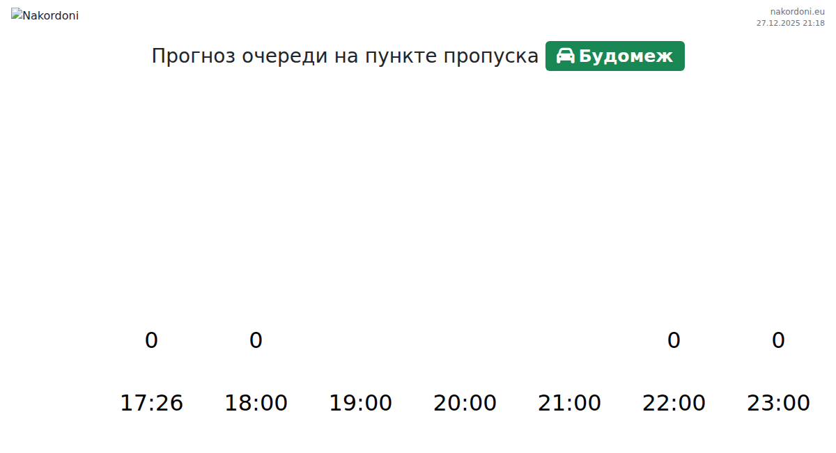 Планируйте свои поездки заранее, используя актуальную информацию о очередях на границе на пункте пропуска Будомеж - легковой автомобиль TaxFREE (Красная линия), чтобы сделать ваш переход быстрым и удобным. Обратите особое внимание на эти часы, чтобы избежать пиковых нагрузок и сократить время ожидания.