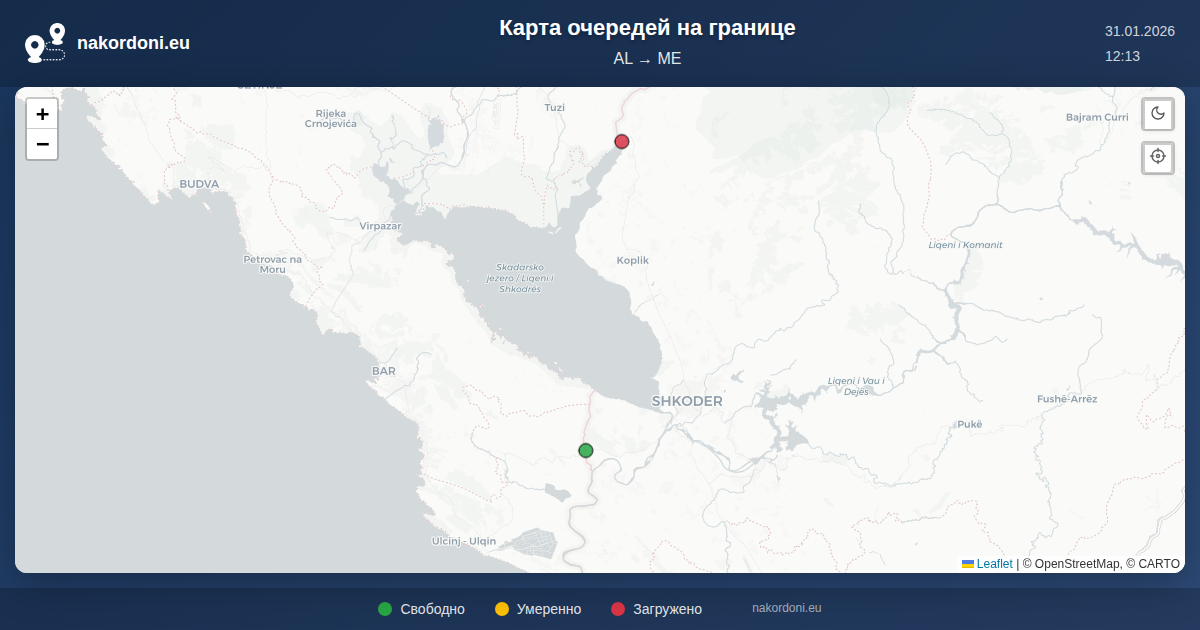 Интерактивная карта границы Албания — Черногория: очереди онлайн, прогноз и статус переходов