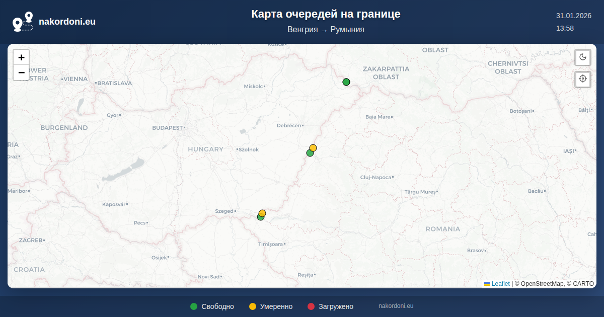 Интерактивная карта границы Венгрия — Румыния: очереди онлайн, прогноз и статус переходов