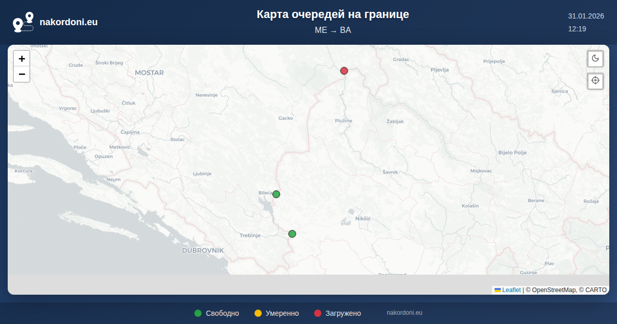 Интерактивная карта границы Черногория — Босния и Герцеговина: очереди онлайн, прогноз и статус переходов