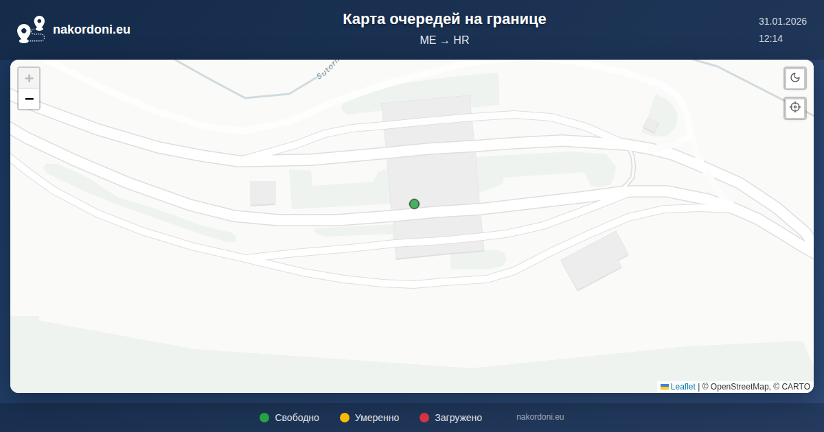 Интерактивная карта границы Черногория — Хорватия: очереди онлайн, прогноз и статус переходов
