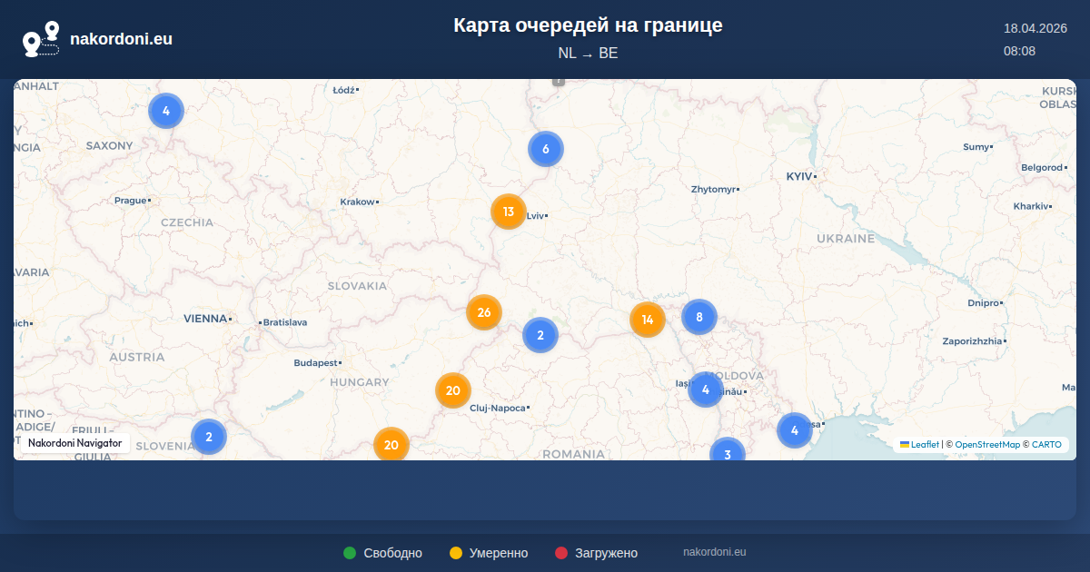 Интерактивная карта границы NL — BE: очереди онлайн, прогноз и статус переходов