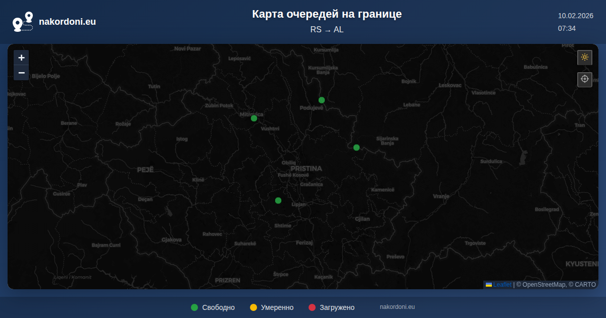 Интерактивная карта границы Сербия — Албания: очереди онлайн, прогноз и статус переходов