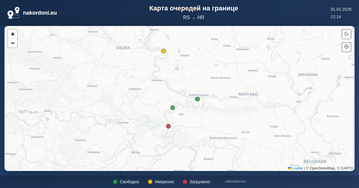 Интерактивная карта границы Сербия — Хорватия: очереди онлайн, прогноз и статус переходов