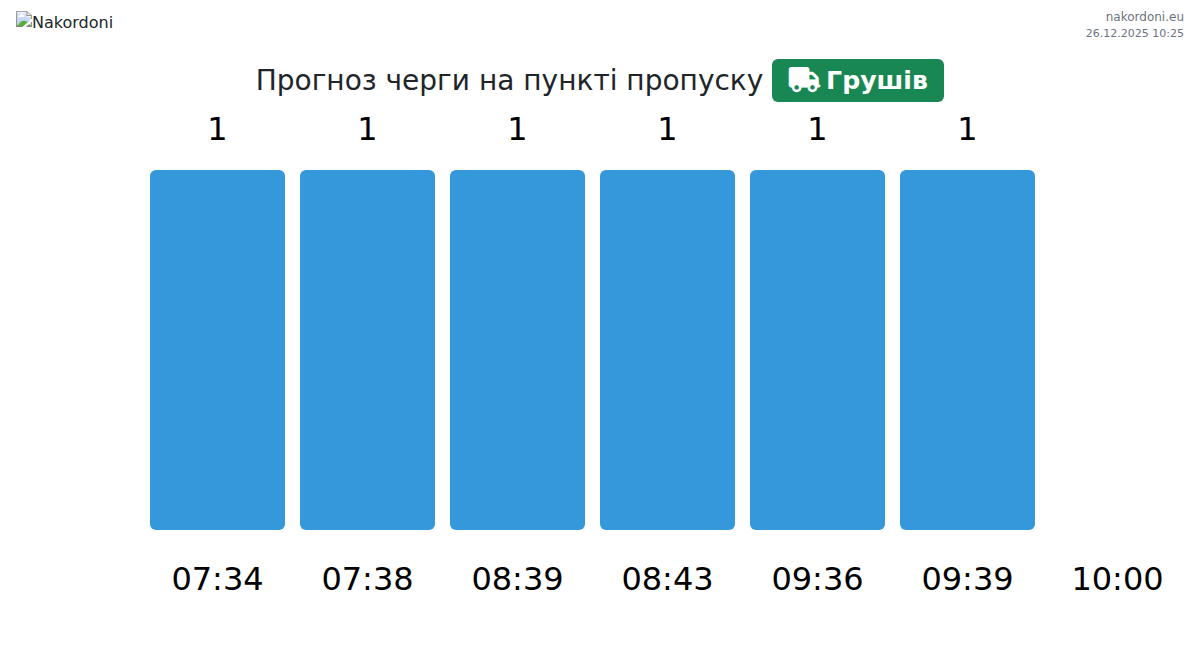 За період 25.12.2025 з 00:00 по 23:59 на кордоні на пункті пропуску Грушів - вантажний транспорт (до 7,5 тонн) були зафіксовані наступні ключові моменти: