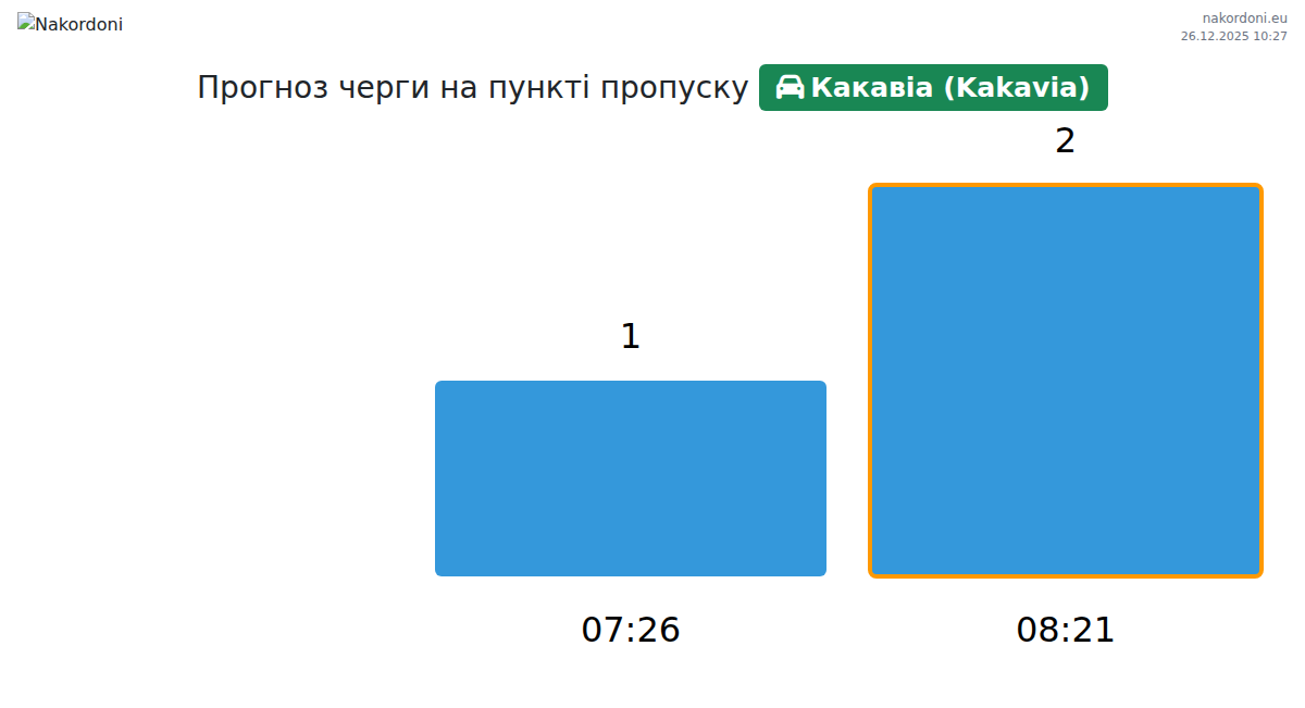 Плануйте свої поїздки заздалегідь, використовуючи актуальну інформацію про черги на кордоні на пункті пропуску Какавіа (Kakavia) - легковий автомобіль, щоб зробити ваш перетин швидким і зручним. Приділіть особливу увагу цим годинам, щоб уникнути пікового навантаження і зменшити час очікування.