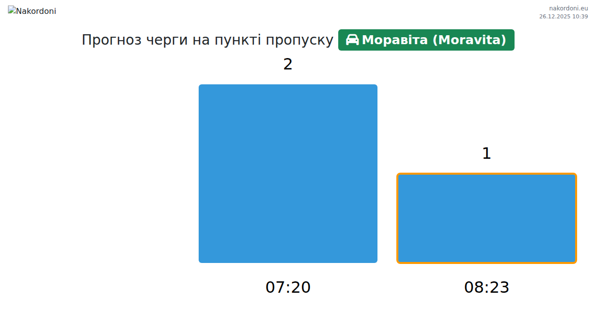 Плануйте свої поїздки заздалегідь, використовуючи актуальну інформацію про черги на кордоні на пункті пропуску Моравіта (Moravita) - легковий автомобіль, щоб зробити ваш перетин швидким і зручним. Приділіть особливу увагу цим годинам, щоб уникнути пікового навантаження і зменшити час очікування.