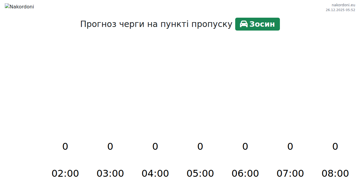 За період 25.12.2025 з 00:00 по 23:59 на кордоні на пункті пропуску Зосин - легковий автомобіль TaxFREE (Червона лінія) були зафіксовані наступні ключові моменти: