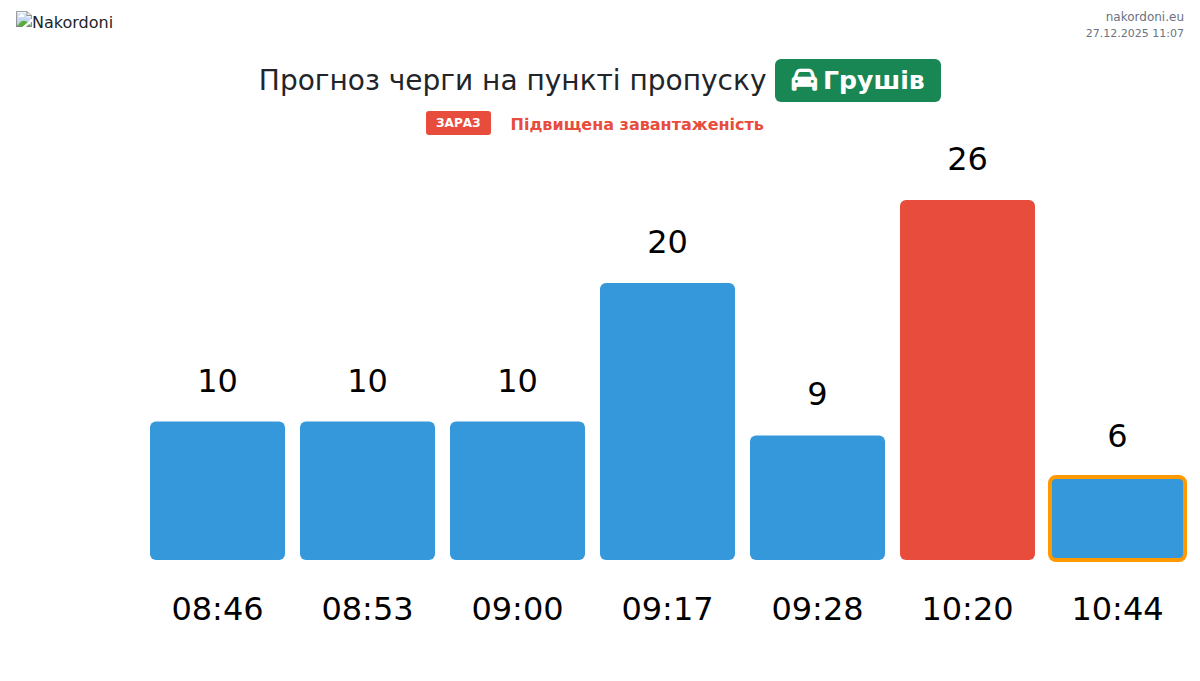 За період 26.12.2025 з 00:00 по 23:59 на кордоні на пункті пропуску Грушів - авто були зафіксовані наступні ключові моменти: