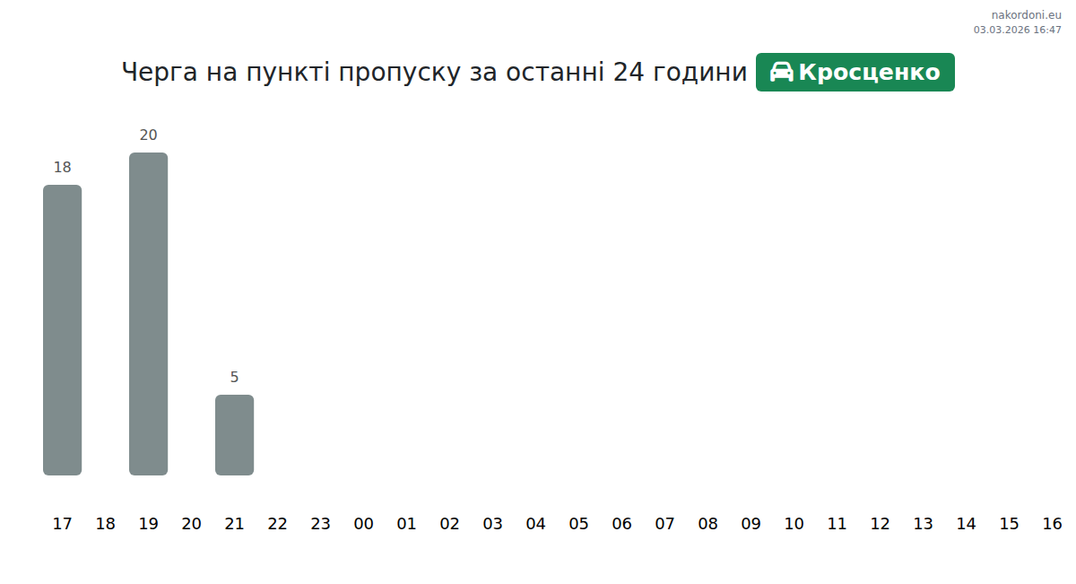 За період 02.03.2026 з 00:00 по 23:59 на кордоні на пункті пропуску Кросценко - авто були зафіксовані наступні ключові моменти: