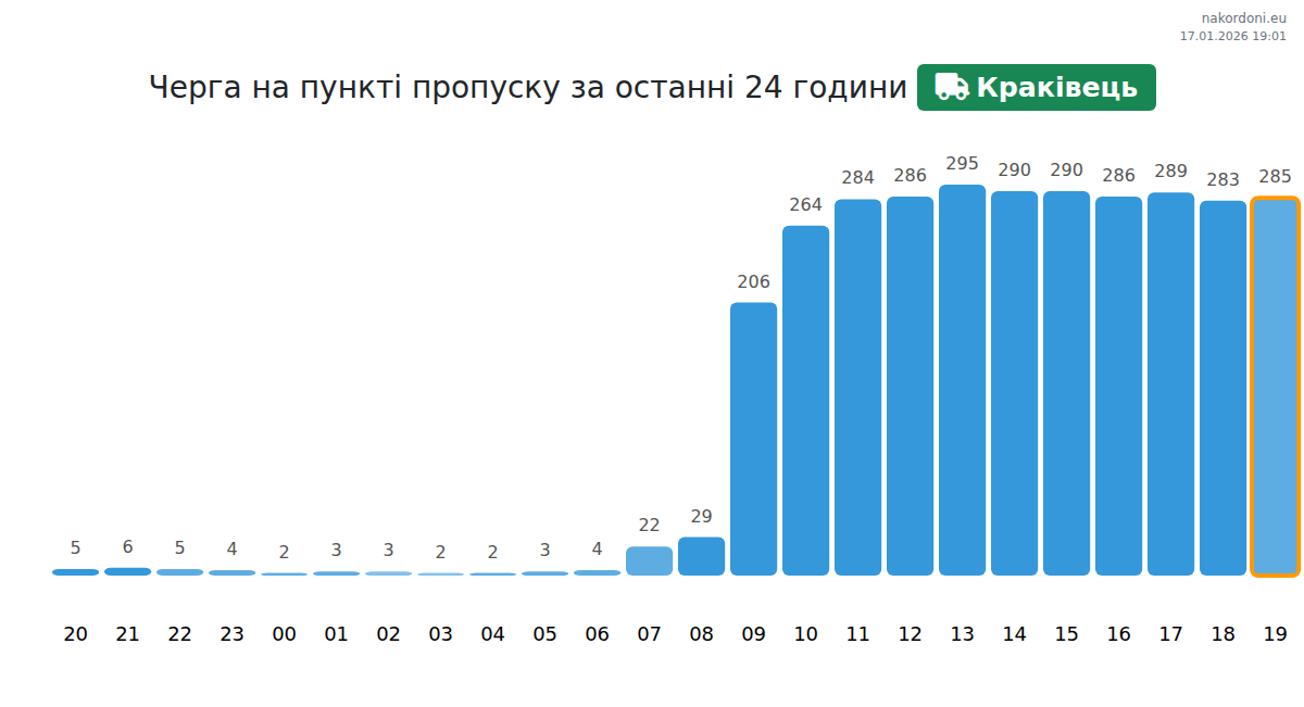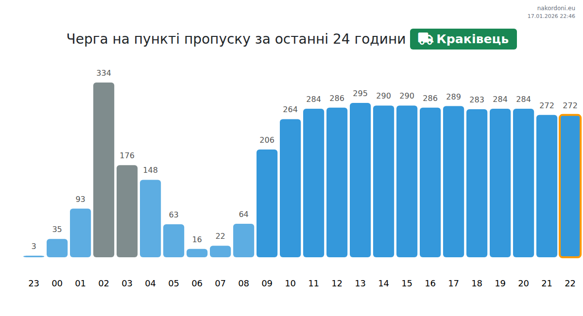 За період 16.01.2026 з 00:00 по 23:59 на кордоні на пункті пропуску Краківець - вантажний транспорт були зафіксовані наступні ключові моменти: