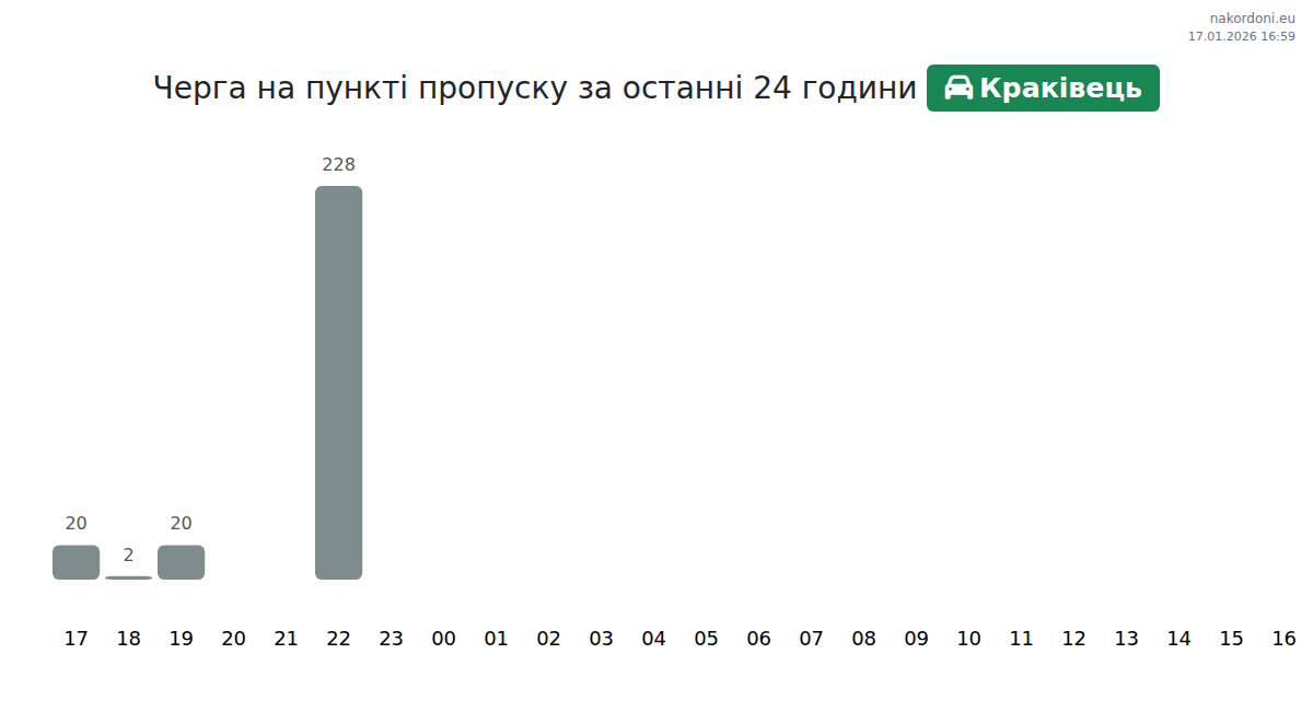 За період 16.01.2026 з 00:00 по 23:59 на кордоні на пункті пропуску Краківець - легковий автомобіль TaxFREE (Червона лінія) були зафіксовані наступні ключові моменти: