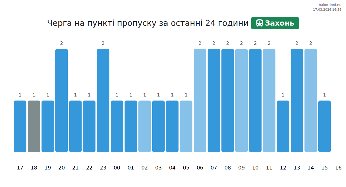 За період 16.03.2026 з 00:00 по 23:59 на кордоні на пункті пропуску Захонь - авто були зафіксовані наступні ключові моменти: