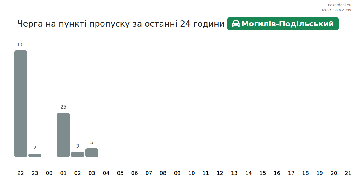 Аналіз черги на кордоні на пункті пропуску Могилів-Подільський - легковий автомобіль за вчора