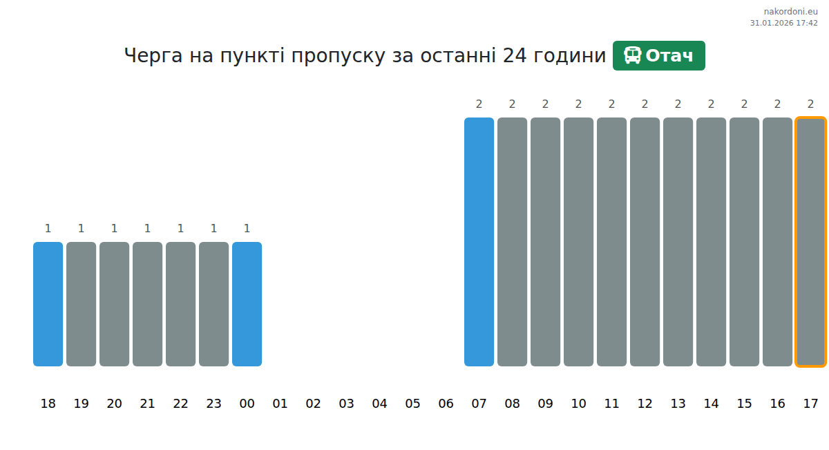 Аналіз черги на кордоні на пункті пропуску Отач - автобус за вчора