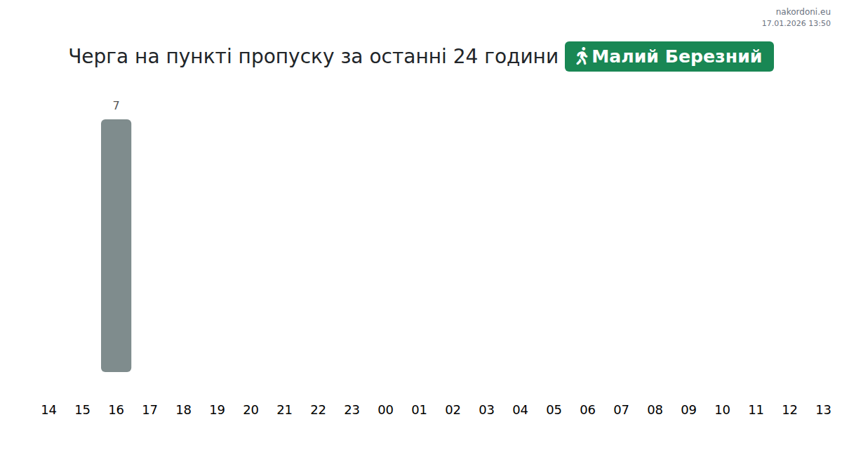 За період 16.01.2026 з 00:00 по 23:59 на кордоні на пункті пропуску Малий Березний - пішохід були зафіксовані наступні ключові моменти: