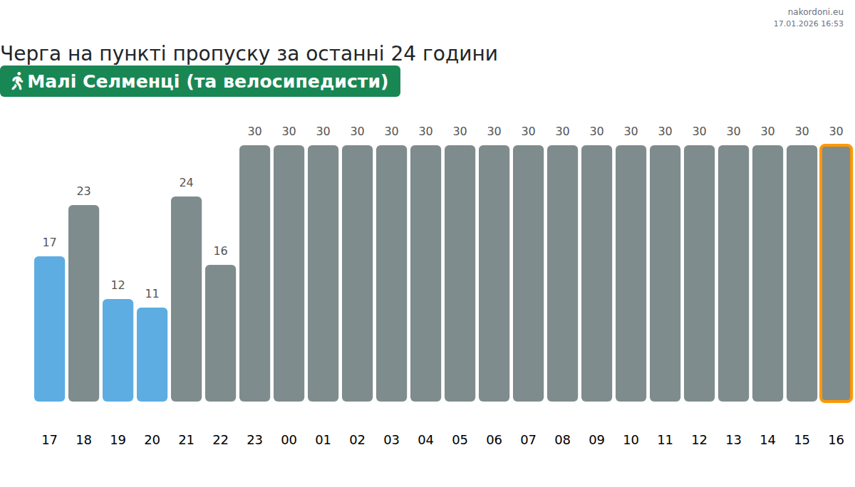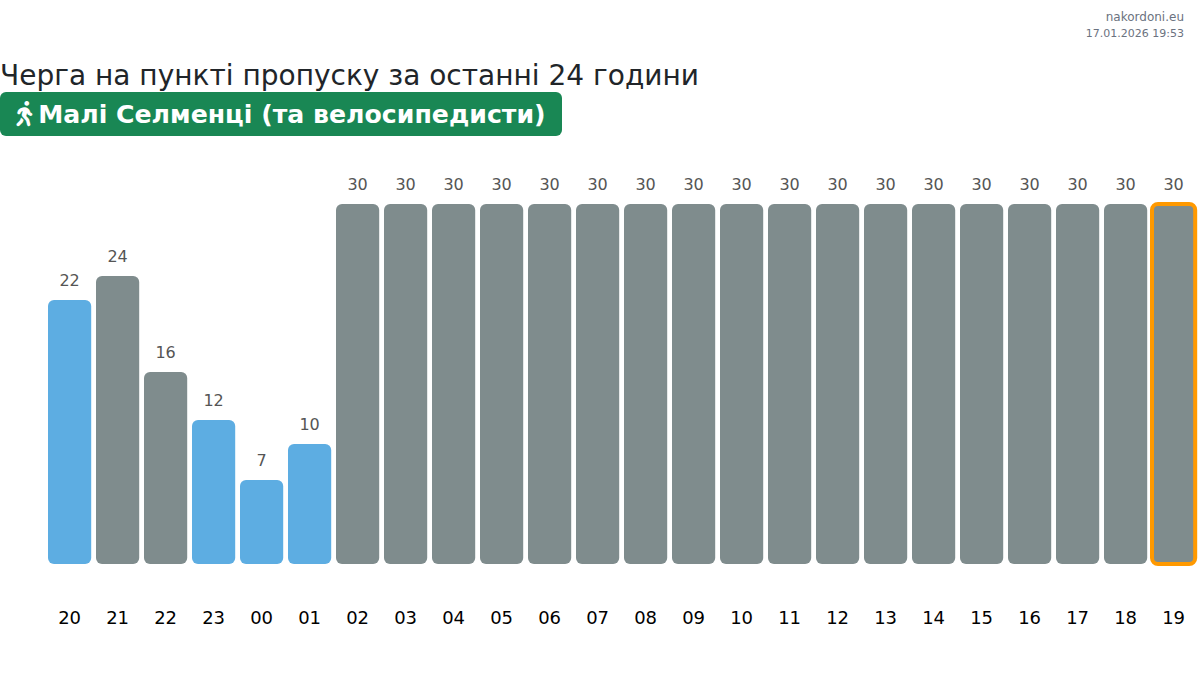 Аналіз черги на кордоні на пункті пропуску Малі Селменці (та велосипедисти) - пішохід за вчора