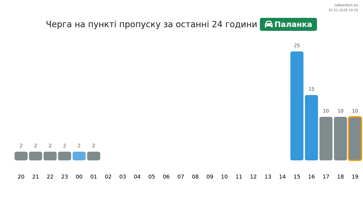 Для уникнення довгих черг на кордоні на пункті пропуску Паланка - легковий автомобіль, рекомендуємо планувати перетин кордону в години найменшого навантаження. Згідно з даними за минулу добу, найменша кількість автомобілів спостерігалася між 7:00 та 11:00 годинами. Це ідеальний час для перетину кордону, щоб зекономити час і уникнути затримок.