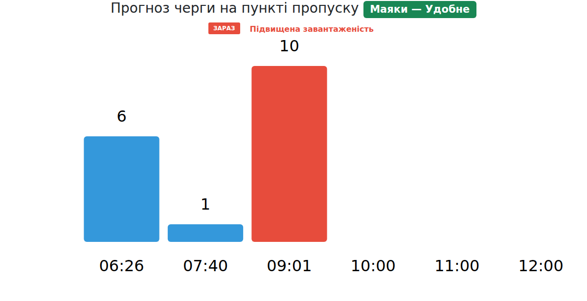 Для уникнення довгих черг на кордоні на пункті пропуску Маяки — Удобне - легковий автомобіль, рекомендуємо планувати перетин кордону в години найменшого навантаження. Згідно з даними за минулу добу, найменша кількість автомобілів спостерігалася між 7:00 та 21:00 годинами. Це ідеальний час для перетину кордону, щоб зекономити час і уникнути затримок.