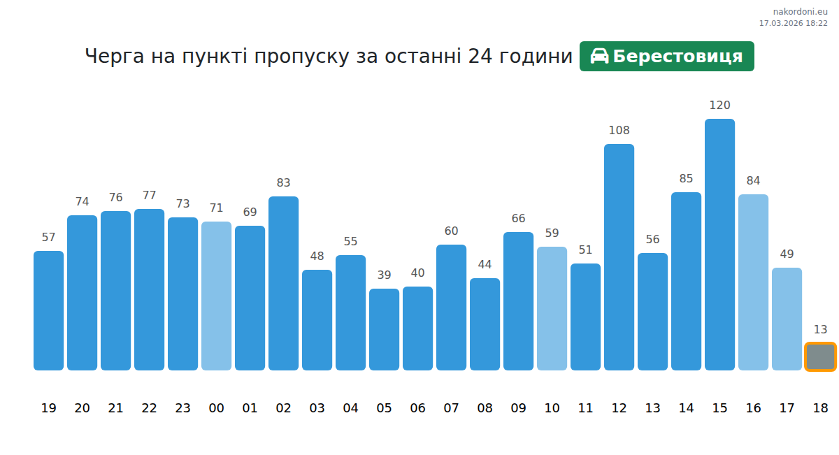 За період 16.03.2026 з 00:00 по 23:59 на кордоні на пункті пропуску Берестовиця - авто були зафіксовані наступні ключові моменти: