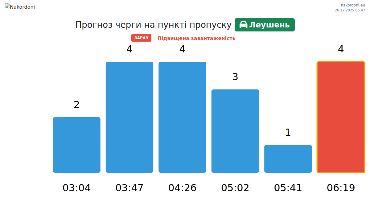 За період 25.12.2025 з 00:00 по 23:59 на кордоні на пункті пропуску Леушень - легковий автомобіль були зафіксовані наступні ключові моменти: