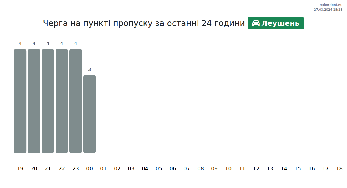 За період 26.03.2026 з 00:00 по 23:59 на кордоні на пункті пропуску Леушень - легковий автомобіль були зафіксовані наступні ключові моменти: