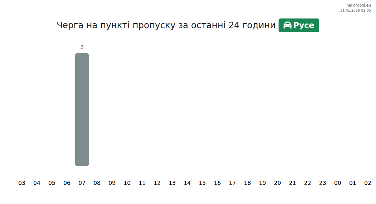 Аналіз черги на кордоні на пункті пропуску Русе - легковий автомобіль за вчора