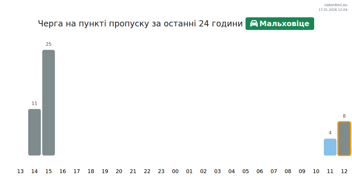 Плануйте свої поїздки заздалегідь, використовуючи актуальну інформацію про черги на кордоні на пункті пропуску Мальховіце - легковий автомобіль, щоб зробити ваш перетин швидким і зручним. Приділіть особливу увагу цим годинам, щоб уникнути пікового навантаження і зменшити час очікування.
