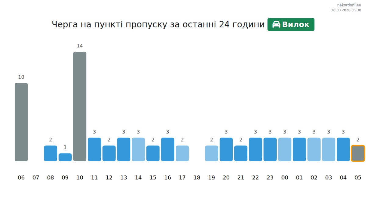 Плануйте свої поїздки заздалегідь, використовуючи актуальну інформацію про черги на кордоні на пункті пропуску Вилок - легковий автомобіль, щоб зробити ваш перетин швидким і зручним. Приділіть особливу увагу цим годинам, щоб уникнути пікового навантаження і зменшити час очікування.