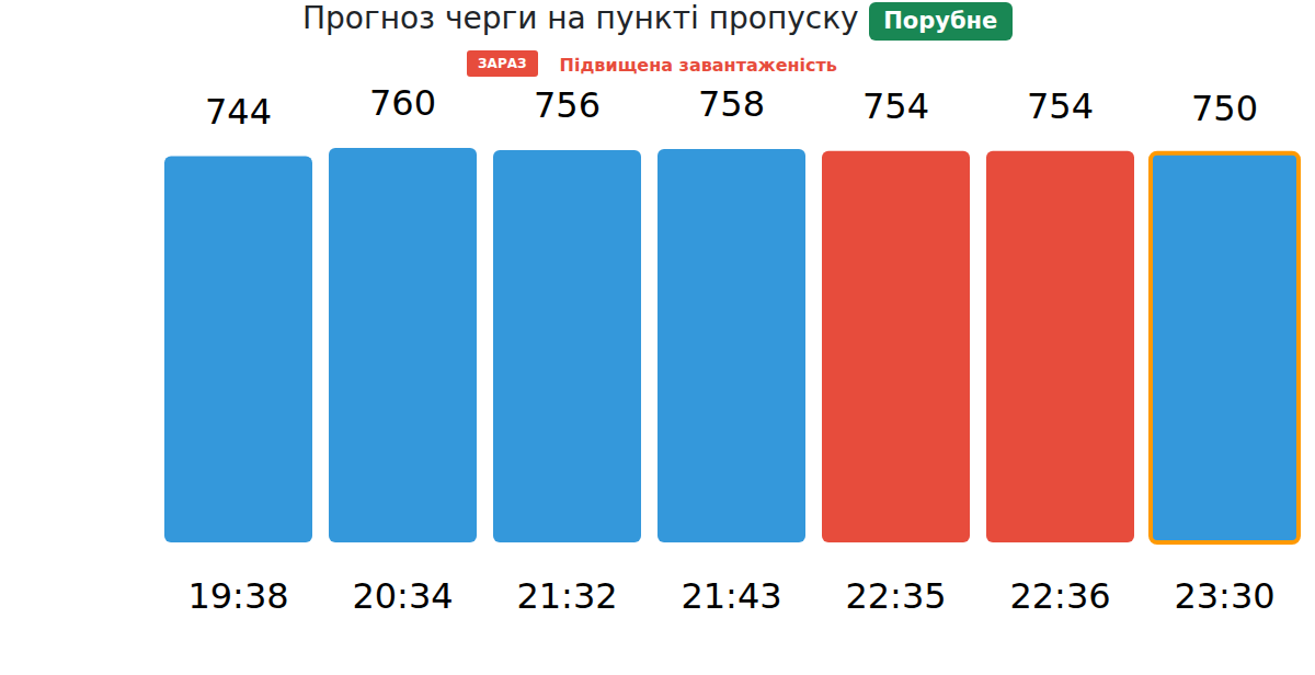 Аналіз черги на кордоні на пункті пропуску Порубне - вантажний транспорт за вчора